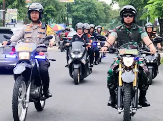 LENSAJATIM || Bersama Kapolres Bojonegoro AKBP Mario Prahatinto, SH., SIK., M.Si., Komandan Kodim (Dandim) 0813 Bojonegoro memimpin Patroli Skala Besar dalam rangka Bulan Bakti TNI-Polri menjelang pengamanan pemungutan dan penghitungan suara Pemilu tahun 2024 diseputaran Bojonegoro Kota.