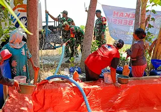 "Semoga bantuan ini dapat bermanfaat meringankan beban warga masyarakat yang sangat membutuhkan air bersih," kata Peltu Mulyo Suwito.